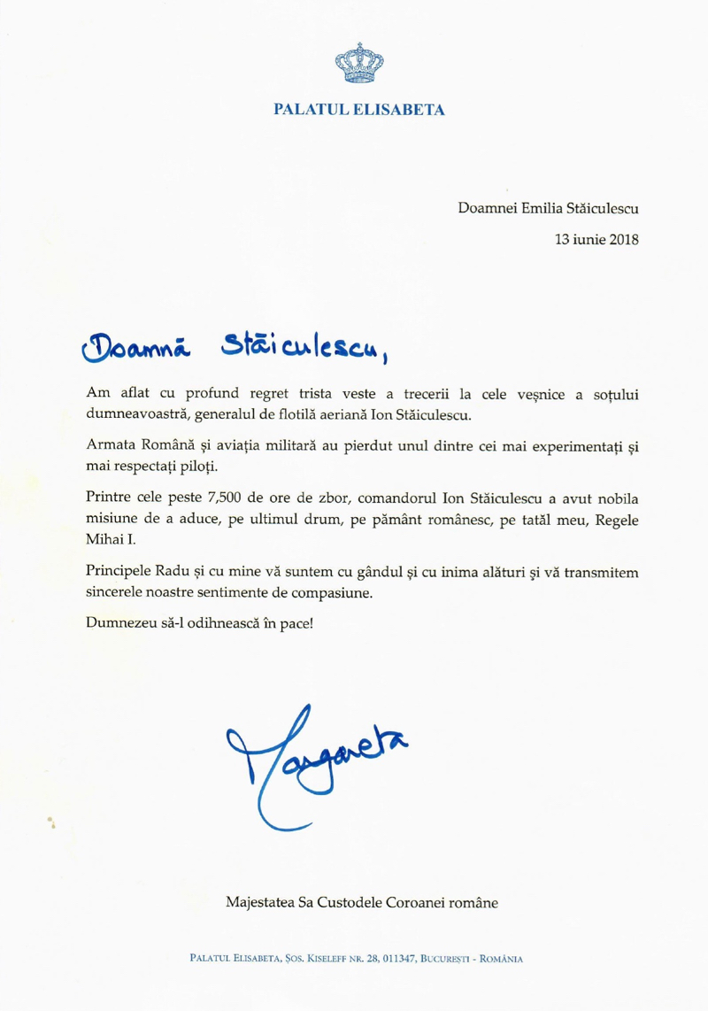 Condoleanțe familiei generalului pilot Ion Stăiculescu