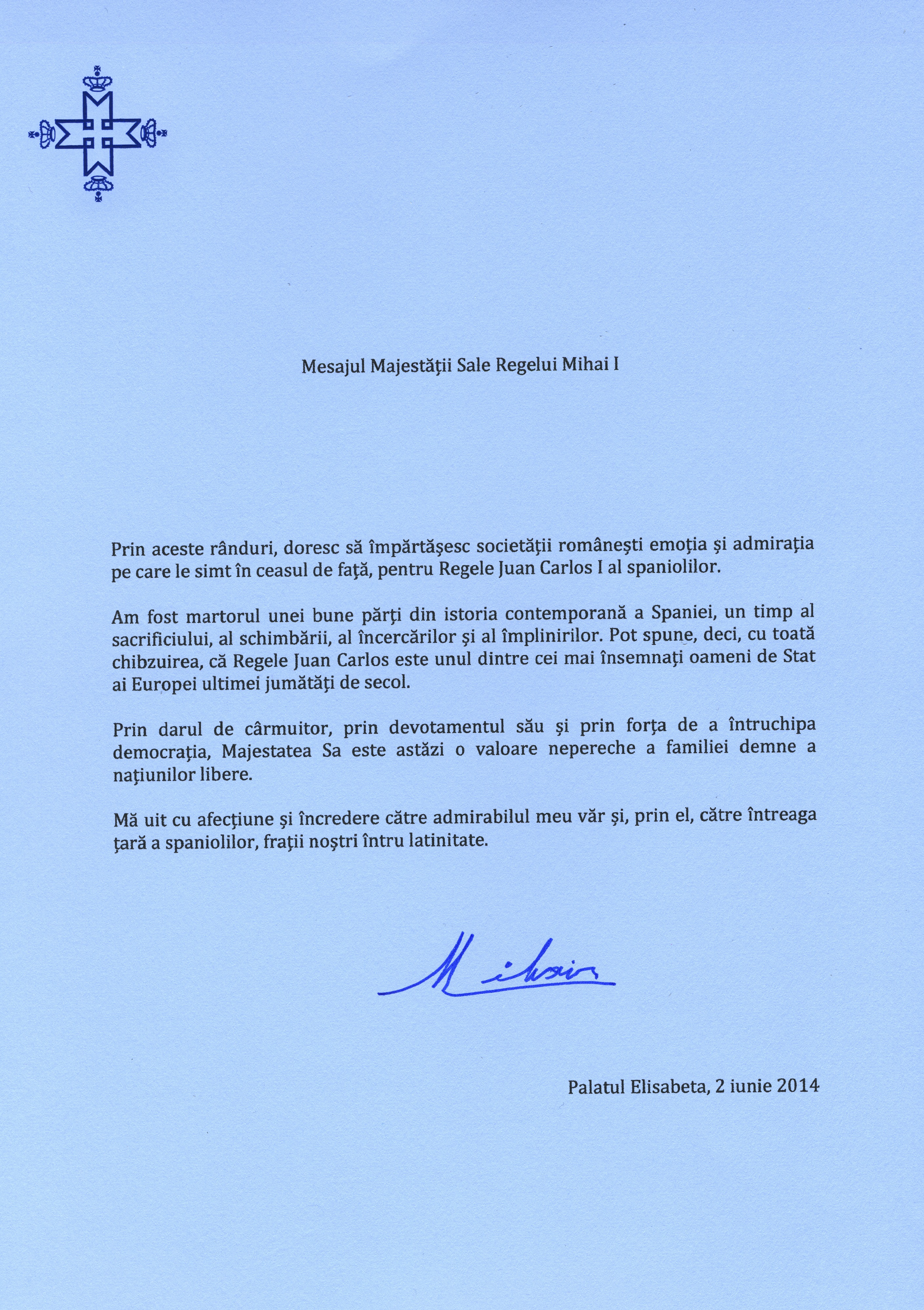 Mesajul Majestății Sale Regelui, 2 iunie 2014
